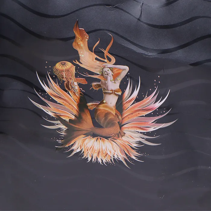 ప్యాకేజింగ్ బ్యాగ్లు సిల్వర్ ఐవరీ పేపర్ బేస్పై పూర్తిగా బ్లాక్ బ్లాక్లో ప్రింట్ చేయబడతాయి. ఇది మా ఫ్యాక్టరీ యొక్క ప్రింటింగ్ బృందం నుండి చాలా అధిక నైపుణ్యాన్ని కోరుతుంది, ఖచ్చితమైన ఇంక్ నియంత్రణ, రంగు కవరేజ్ మరియు ఖచ్చితమైన, అధిక-ముగింపు ఆకృతిని సాధించడానికి ఖచ్చితమైన పోస్ట్-ప్రాసెసింగ్ అవసరం.