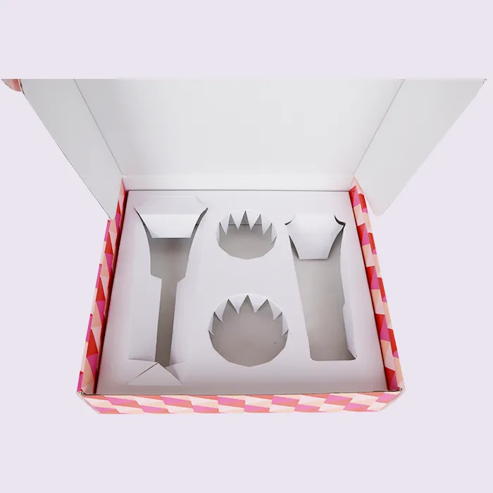 ప్యాకేజింగ్ ఇన్సర్ట్ కోసం, మేము అనేక పదార్థాలను పరిగణించాము: కాగితం, ప్లాస్టిక్, నురుగు మరియు పర్యావరణ అనుకూలమైన అచ్చు చొప్పించు. అంతిమంగా, మేము వాటి తక్కువ ధర, వేగవంతమైన టర్నరౌండ్ సమయం, సరళత మరియు పర్యావరణ అనుకూలమైన, బయోడిగ్రేడబుల్ స్వభావం కోసం పునర్వినియోగపరచదగిన పేపర్ ఇన్సర్ట్లను ఎంచుకున్నాము. పర్సనల్ కేర్ షిప్పింగ్ బాక్స్ల కోసం పేపర్ ఇన్సర్ట్లకు కస్టమ్ అచ్చులు అవసరం లేదు, కాబట్టి మోల్డ్ ఫీజులు అవసరం లేదు. Doyoupack యొక్క ప్యాకేజింగ్ డిజైనర్లు నమూనా ఆధారంగా కొలతలు, స్లాట్లు, ట్యాబ్లు మరియు ఇంటర్లాకింగ్ ఫీచర్లను అనుకూలీకరించి, ఆపై డై-కటింగ్ ద్వారా ఇన్సర్ట్ను ఉత్పత్తి చేస్తారు. పేపర్ ఇన్సర్ట్ అనేది ఒక-ముక్క ముడతలుగల పదార్థం-ఖర్చు-సమర్థవంతమైన, పూర్తిగా జీవఅధోకరణం చెందగల మరియు అత్యంత పర్యావరణ అనుకూలమైనది. ఇది ఉత్పత్తిని బాగా ప్రదర్శించడమే కాకుండా మద్దతు మరియు రక్షణను కూడా అందిస్తుంది. ముఖ్యంగా, ఇది ఎకో-మోల్డ్ ఇన్సర్ట్లు, ప్లాస్టిక్ ఇన్సర్ట్లు లేదా గ్రేబోర్డ్ ఇన్సర్ట్లతో పోలిస్తే ఉత్పత్తి సెట్ మొత్తం బరువును గణనీయంగా తగ్గిస్తుంది. వన్-పీస్ ముడతలు పెట్టిన ఇన్సర్ట్ మరియు వన్-పీస్ పర్సనల్ కేర్ షిప్పింగ్ బాక్స్లు కూడా ఫ్లాట్ ట్రాన్స్పోర్ట్ను సులభతరం చేస్తాయి.