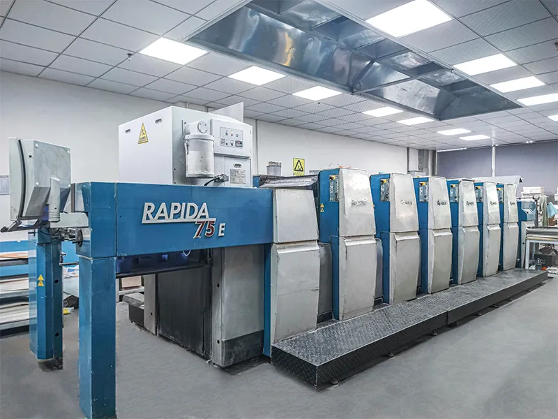 మేము జర్మనీ నుండి దిగుమతి చేసుకున్న హైడెల్బర్గ్ మరియు KBA-RAPIDA ప్రింటింగ్ మెషీన్లను ఉపయోగిస్తాము, ఇవి X-రైట్ కలర్మీటర్లు మరియు అధికారిక Pantone కలర్ కార్డ్లను కలిగి ఉంటాయి, ఇవి రంగులను ఖచ్చితంగా కొలవగలవు మరియు సరిపోల్చగలవు.